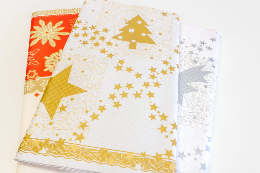 Les collections de Noël standard avec nos propositions créatives peuvent être commandées tout au long de la campagne de Noël. Grâce à notre savoir-faire et à l’expérience de nos designers, nous sommes en mesure de créer de linge de table sous marque privée qui complètent la gamme d’ensembles jetables pour la table de Noël du détaillant ou du distributeur. Les résultats sont des ensembles composés d’une nappe ou d’un chemin de table coordonnés avec des serviette, des assiettes et des verres, pour une table de grand effet. Notre capacité de production nous permet de prendre en charge de gros volumes de production et de traiter rapidement les commandes, même en période de forte demande.